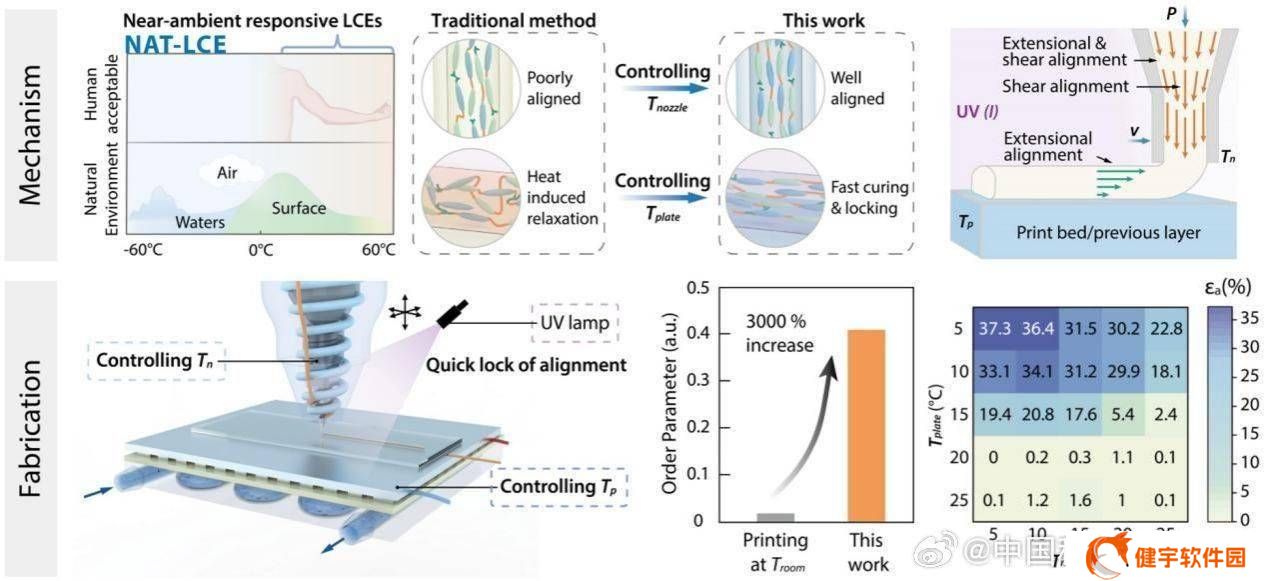 通过这种创新技术,研究团队成功制造出了一种在近环境温度下就能响应的液晶弹性体(NAT-LCEs)。这些液晶弹性体不仅具有高取向序参数,还具备了多元化的形变能力。这一成果标志着智能材料领域的一大步前进。