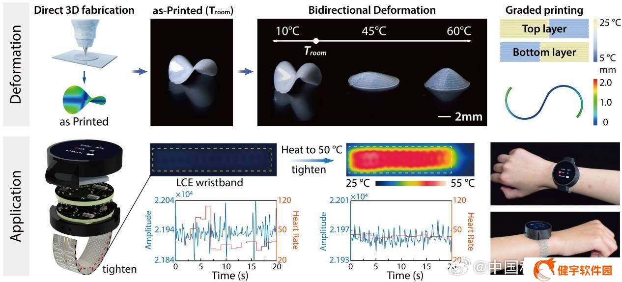 更令人瞩目的是,基于这种新型液晶弹性体,研究团队进一步开发了一款智能腕带系统。该系统在心率监测方面表现出了显著提升的精度,为智能穿戴设备的发展开辟了新的方向。