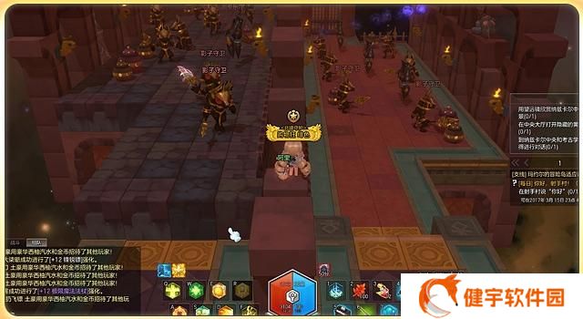 这个迷宫地图不需要躲地板,而是需要清理完下面一侧的小怪后,捡起地上的罐子扔到上面一侧,帮助DPS清理小怪。