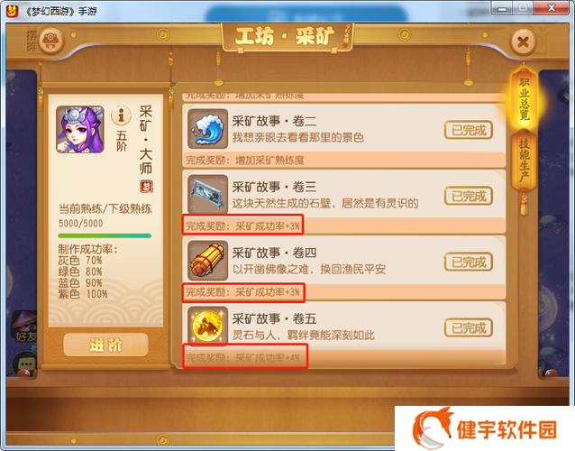 完成采矿故事卷(三/四/五卷)也可提升采矿成功率。