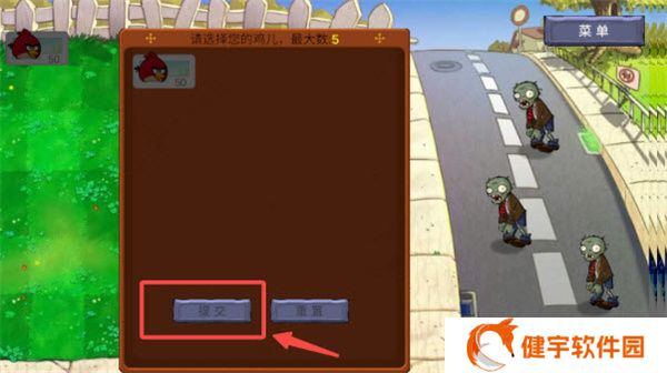 挑选完毕后,点击 “提交” 按钮,正式 踏入战场,迎战汹涌袭来的 僵尸大军。