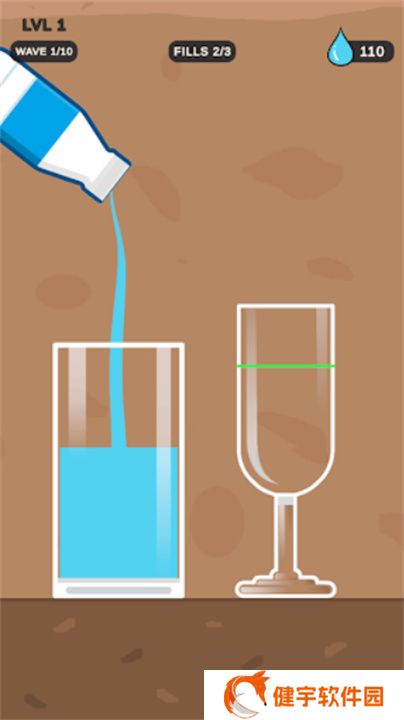 倒水大师游戏玩法攻略轻触操作——点击屏幕左侧,即可将水流引导至左侧的玻璃杯中。