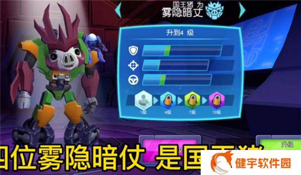 4、角色收集与升级:不同变形金刚小鸟拥有专属技能,战斗力可以通过升级变得更加强大。